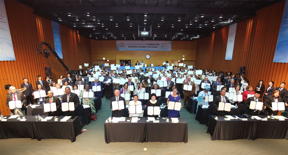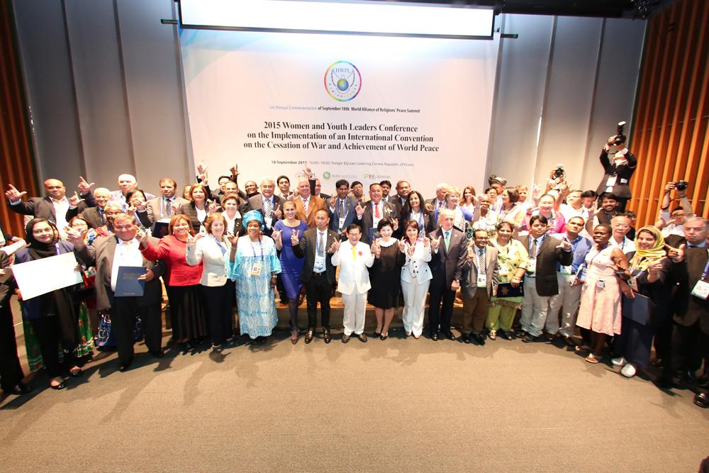 ÀÏ ³â ÀüÀÎ 2014³â 9¿ù 18ÀÏ, (»ç)Çϴù®È¼¼°èÆòȱ¤º¹(´ëÇ¥ À̸¸Èñ, HWPL) Àº Á¾±³´ëÅëÇÕ ¸¸±¹È¸ÀÇ¿¡¼ ¼¼°è °¢±¹ Á¤Ä¡¡¤Á¾±³ÁöµµÀÚµéÀÌ ÆòÈ Çù¾à¼¿¡ ÇÔ²² µ¿ÂüÇÏ°í Æòȸ¦ À§ÇÑ ±¹Á¦¹ý ¹ßÀÇ °áÀÇ¿¡ µ¿ÂüÇÏ´Â ¼º°ú¸¦ ÀÌ·ç¾ú´Ù.