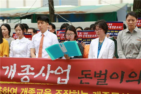 ¡®°Á¦°³Á¾±³À°¡¯Àº ±¹³» °³½Å±³°è¿¡¼ À̴ܰ¨º°»ç¶ó ÁöĪÇÏ´Â ¸ñ»ç(ÀÌÇÏ °³Á¾¸ñ»ç)°¡ ÁøÇàÇÑ´Ù. ÀÚ½ÅÀÇ ±³´Ü°ú ´Ù¸¥ ±³ÀÎÀ» ÀÚ½ÅÀÇ ±³´ÜÀ¸·Î ¹Ù²Ù±â À§ÇØ ¾Ï¾Ï¸®¿¡ ÁøÇàµÇ°í ÀÖÀ¸¸ç, ÀÌ °úÁ¤¿¡¼ °³Á¾¸ñ»çµéÀº 10¾ï ¿ø ÀÌ»óÀÇ ¼öÀÍÀ» ì±ä °ÍÀ¸·Î µå·¯³µ´Ù.