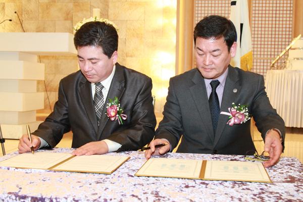¡ãūƲÇ÷¯½º ±è°Ç½Ä ȸÀå°ú ¾ÆÅÂÆòȱ³·ùÇùȸ ¾ÈºÎ¼ö ȸÀåÀÌ ÈÄ¿ø Çù¾à¼¸¦ ÀÛ¼ºÇϰí ÀÖ´Ù.