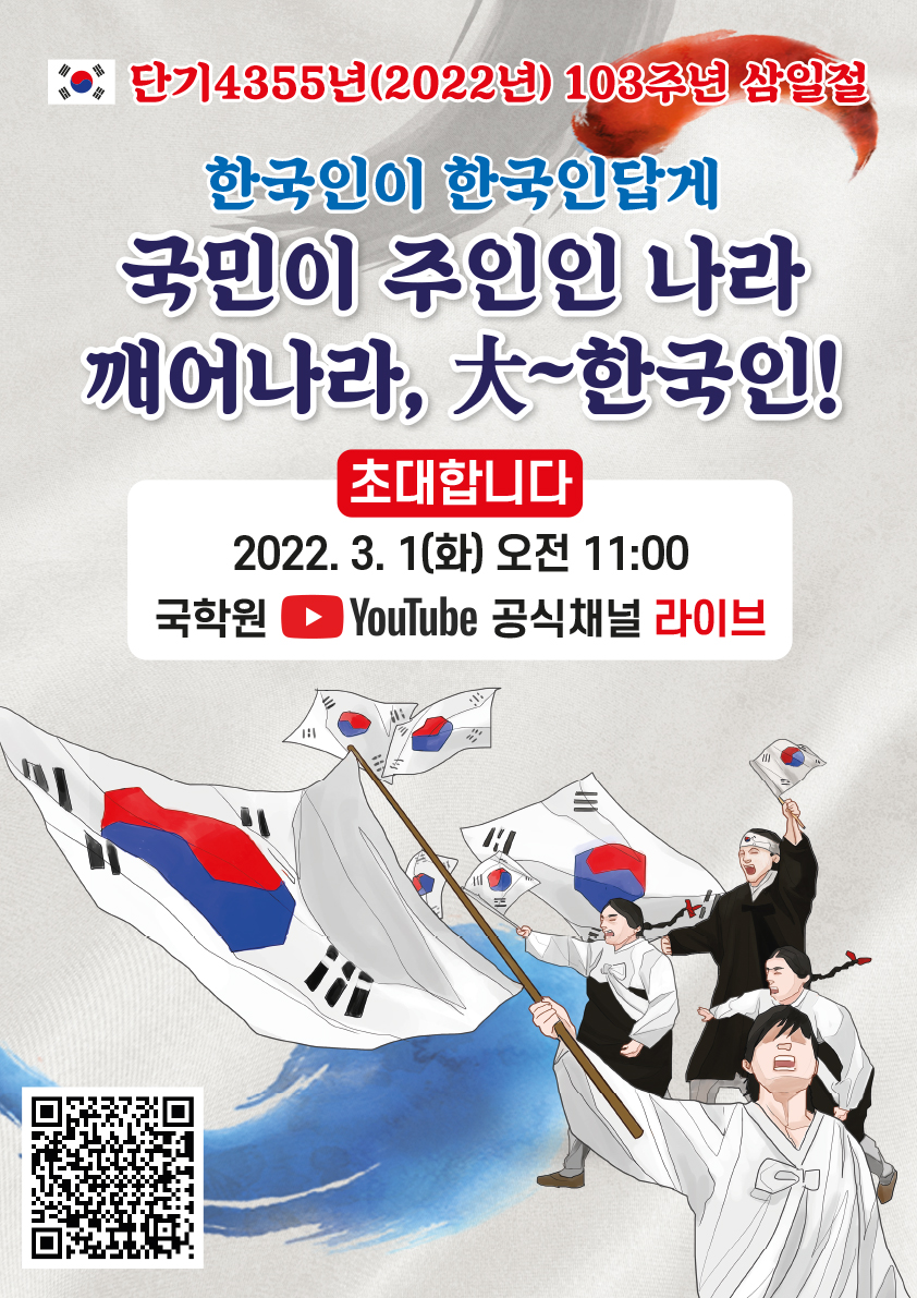 À̳¯ Çà»ç´Â ±¹Çпø °ø½Ä À¯Æ©ºê ä³ÎÀÎ ±¹ÇÐ TV¿¡¼ ¿ÀÀü 11½ÃºÎÅÍ 12½Ã±îÁö ¶óÀ̺ê·Î ÀÒ¾î¹ö¸° ³ª¶ó¸¦ µÇã±â À§ÇØ ´ëÇѵ¶¸³À» ¿ÜÄ£ ¼±Á¶µéÀÇ 3.1¿îµ¿ Á¤½ÅÀ» µÇ»õ±â°í ´ëÇѹα¹ÀÇ ÁÖÀÎÀÎ ±¹¹ÎÀÇ ¹ÎÁ· ¾ó°ú È¥À» ±ú¿ö Å©°í ¹à°í ȯÇÑ Çѱ¹Àΰú ´ëÇѹα¹À¸·Î ³ª°¡±â¸¦ ¹Ù¶ó´Â ¿°¿øÀ» ´ã¾Æ »ýÁß°è µÈ´Ù.